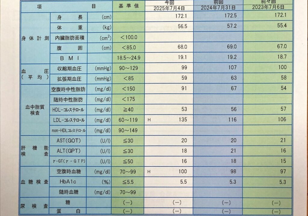 そんな私の2025年の健康診断結果は、次のようなものでした。