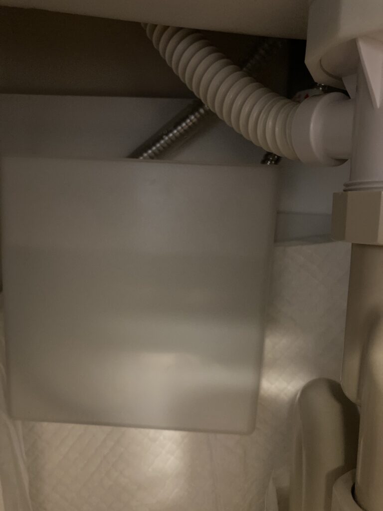 まずは下収納内の物を全部出して、作業スペースを確保します。